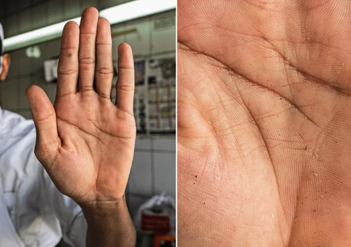 Ладонь парикмахера легко узнать по налипшим на неё мелким волоскам.