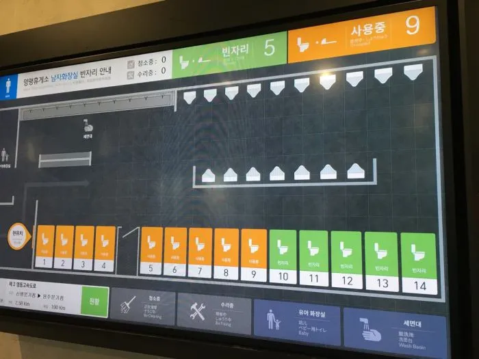 11. Экран показывает, какие кабинки свободны для похода в туалет