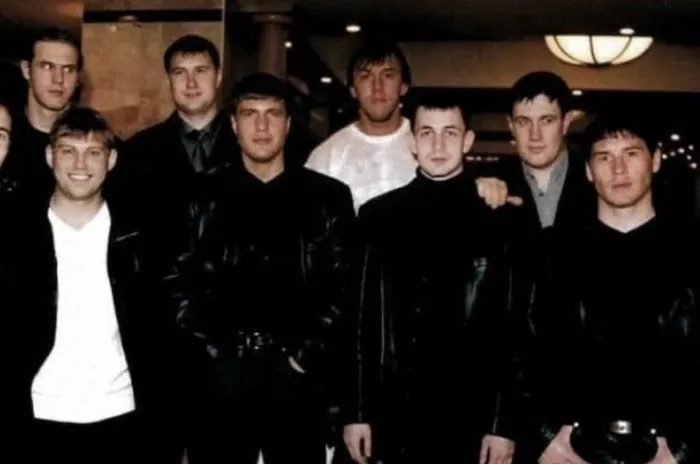 На фото (слева направо): Андрей Пылев (Карлик; в тюрьме), Сергей Ананьевский (Культик, убит в 1996 году), Григорий Гусятинский (Гриша Северный; убит в 1995 году) Сергей Буторин (Ося; получил пожизненное заключение)