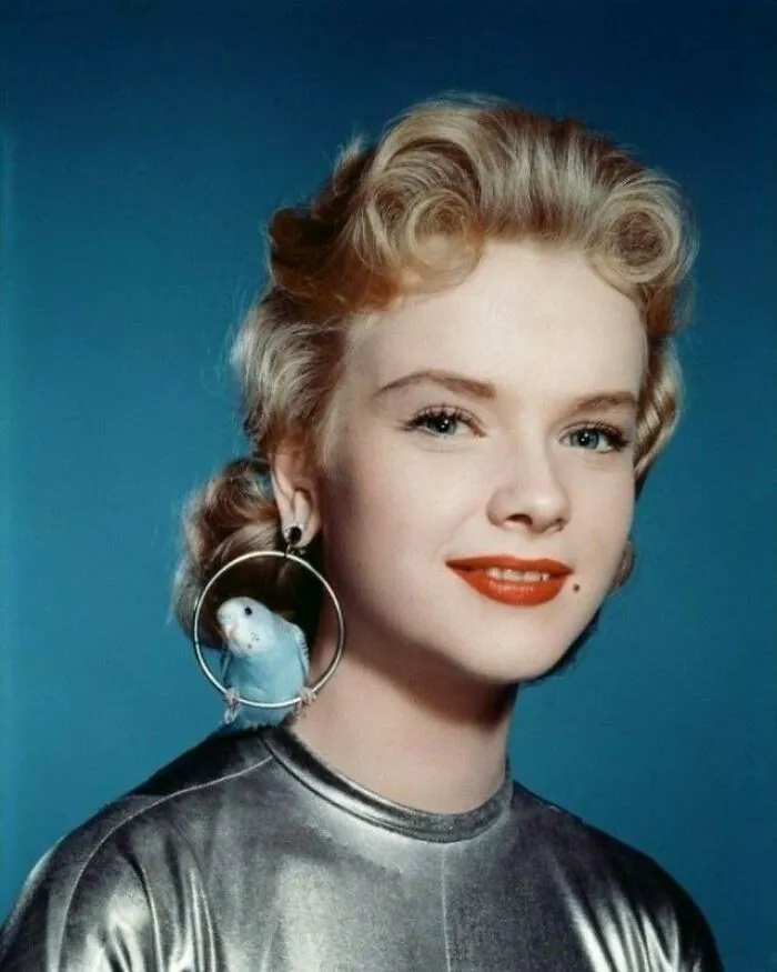 5. Энн Фрэнсис в серьгах с настоящим волнистым попугайчиком в фильме "Запретная планета", 1956 год