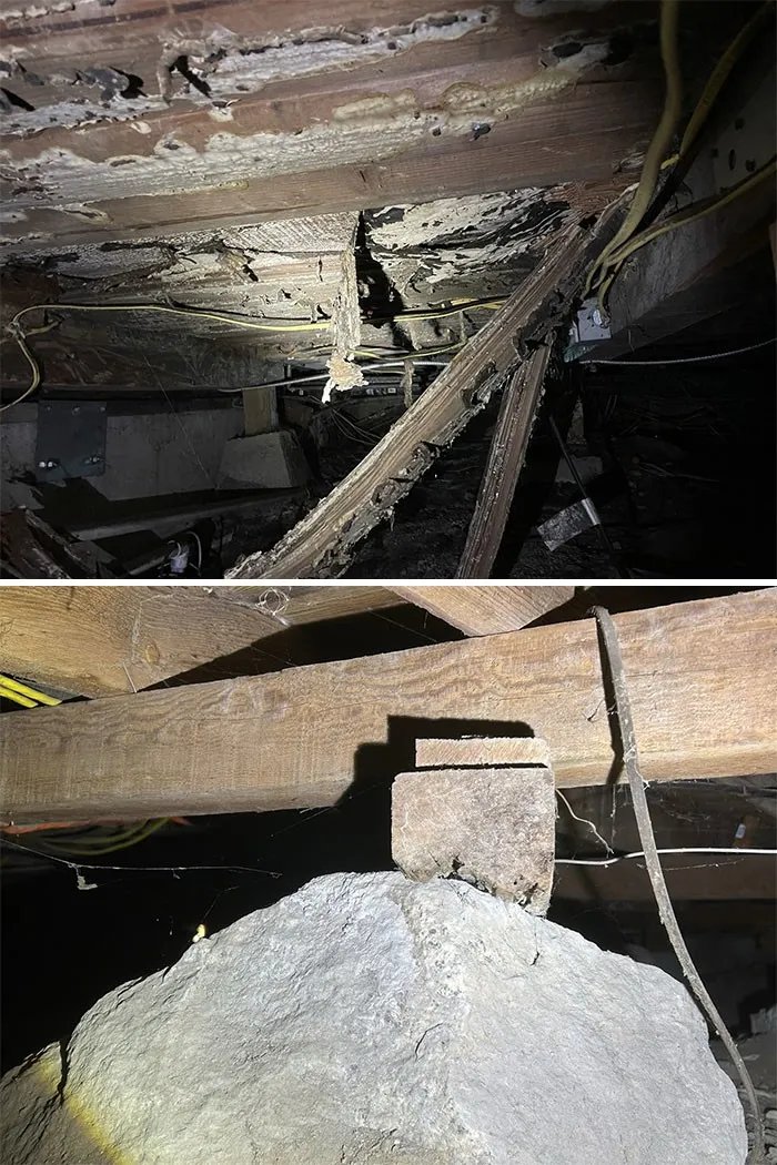 Когда появляются признаки возможных проблем с фундаментом, важно своевременно провести ремонт. Эта самодельная опора в подвальном помещении не является безопасным и эффективным способом поддержки конструкции. Столбы должны быть изготовлены из прочных материалов и надежно закреплены на бетонном фундаменте.