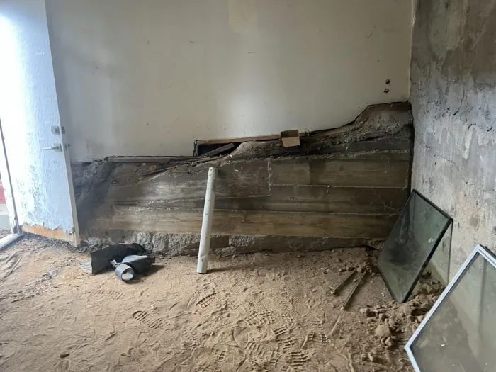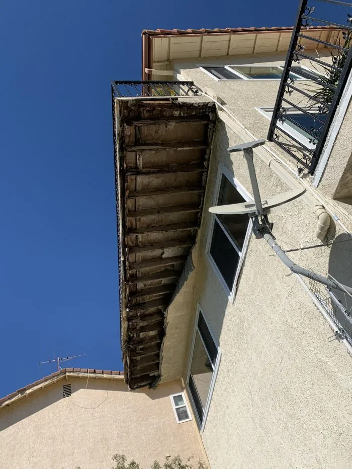 Вода попала между балками и штукатуркой, в результате чего большая часть штукатурки отвалилась.