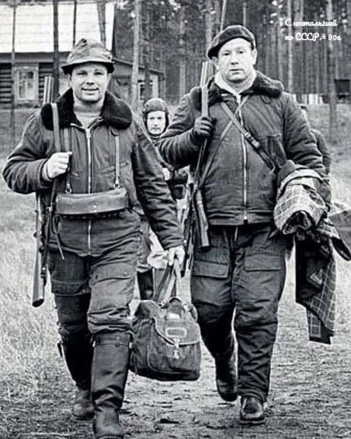 29. Космонавты Ю.А. Гагарин и А.А. Леонов на охоте.