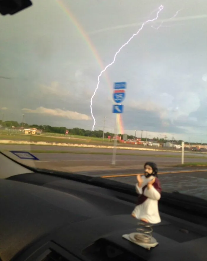 18. «Хотел сфотографировать радуга, а в этот момент еще и молнию удалось запечатлеть»