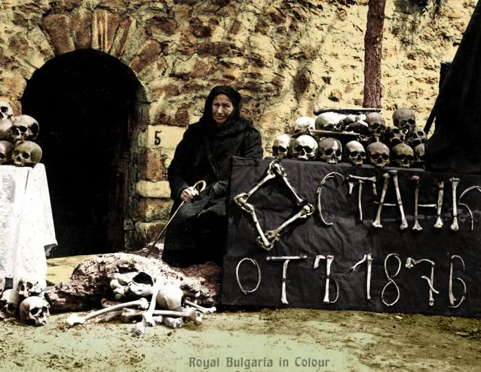 Выжившая после резни в Батаке на руинах деревни, Болгария, 1927 год