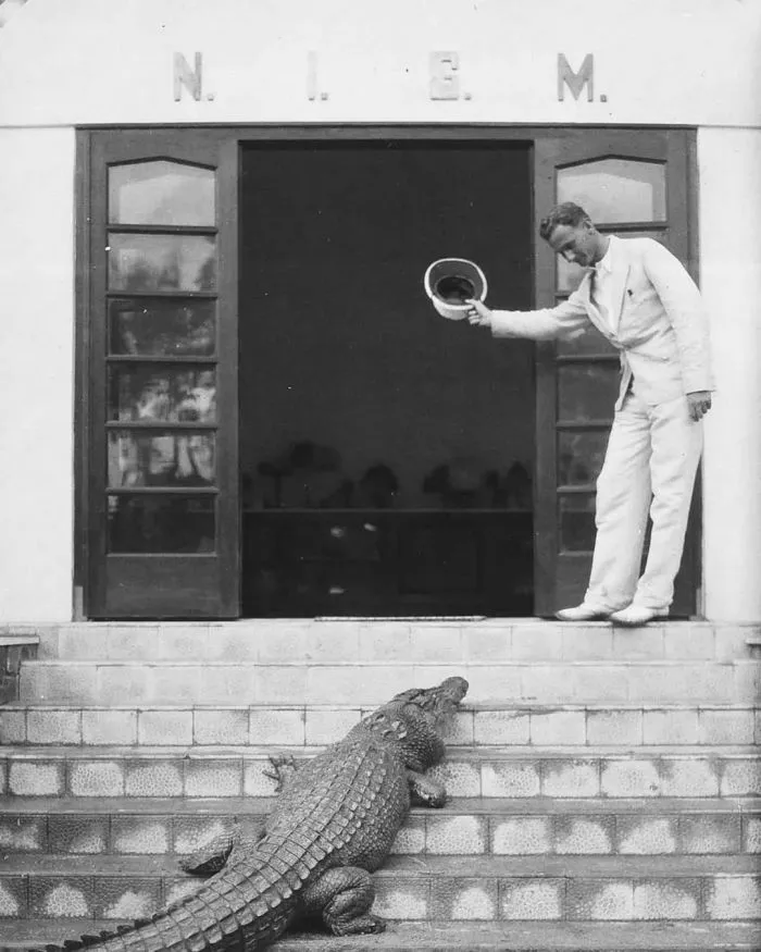 Сотрудник нидерландской индийской газовой компании приветствует посетителя. 1932 год