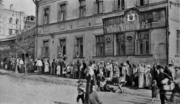 Очередь за хлебом в Москве. Август 1917 года. Российская империя