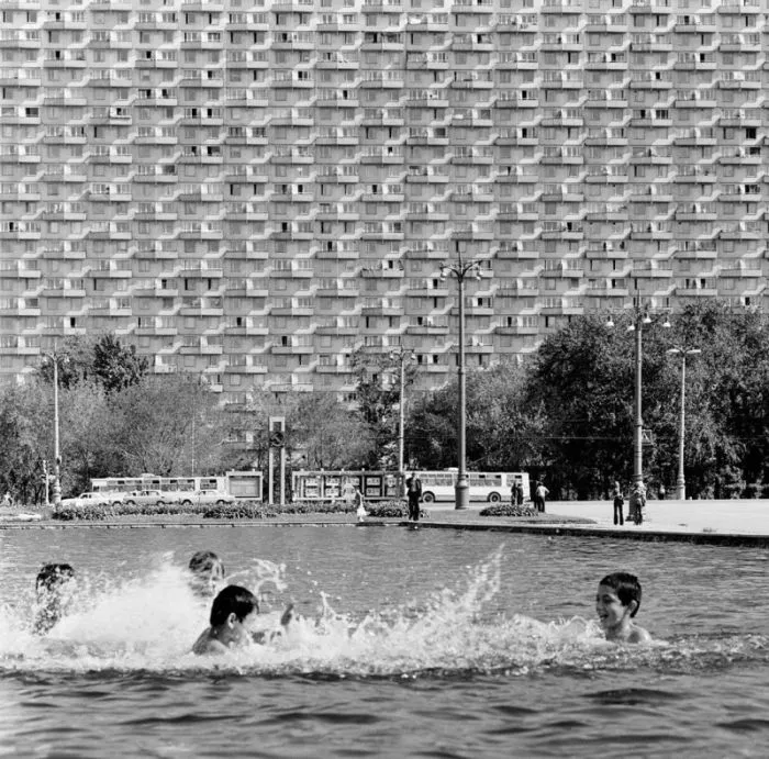 В фонтане на проспекте Мира, Москва, СССР, 1977 год