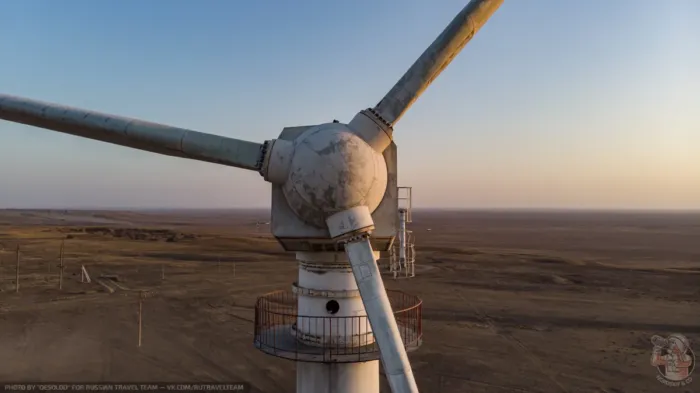 В двадцати километрах от Элисты, столицы Республики Калмыкия, возле трассы стоит заброшенный ветрогенератор. Башен там три, но на одной установлены антенны сотовых операторов, а от второй осталось только основание, меня заинтересовала третья башня — с виду вполне целая.