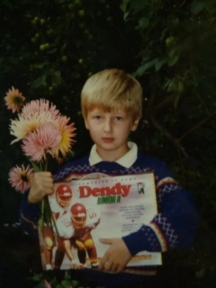 Парень держит в руках долгожданный подарок, 1990-е годы.