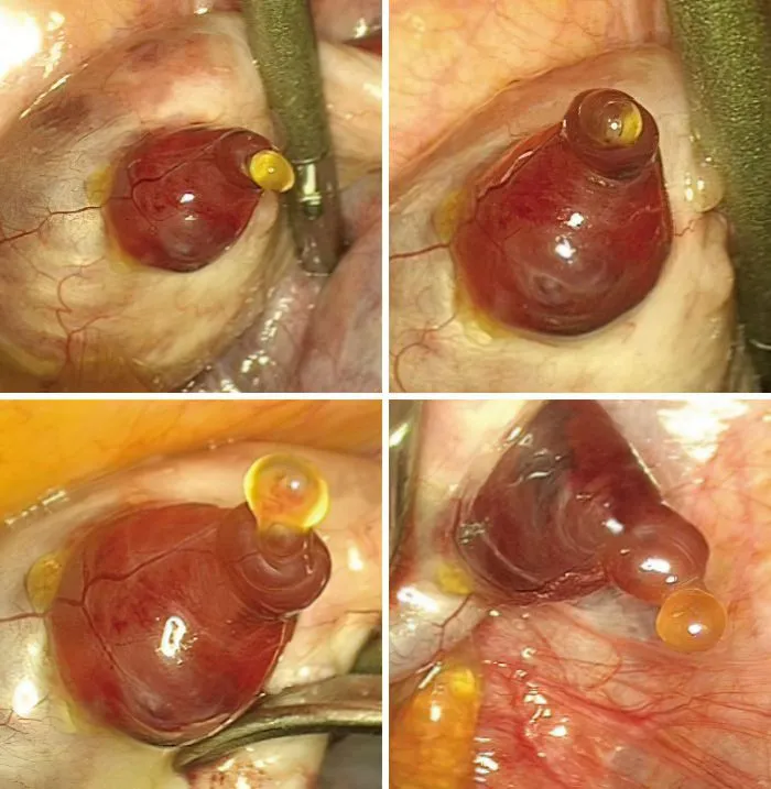 6. Гинеколог Жак Донне во время гистерэктомии запечатлел человеческую яйцеклетку, выходящую из яичника