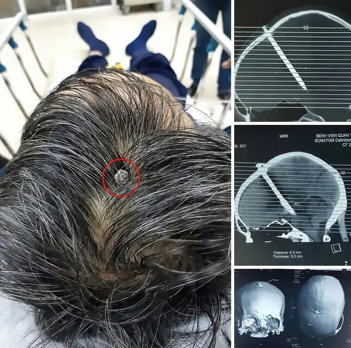 14. Мужчина с 3-дюймовым гвоздем в черепе (7,5 см) через два дня попал в больницу… но не помнит, как он туда попал!