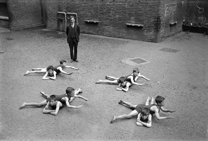 6. Урок плаванья на школьном дворе в Англии в начале 1920-х годов