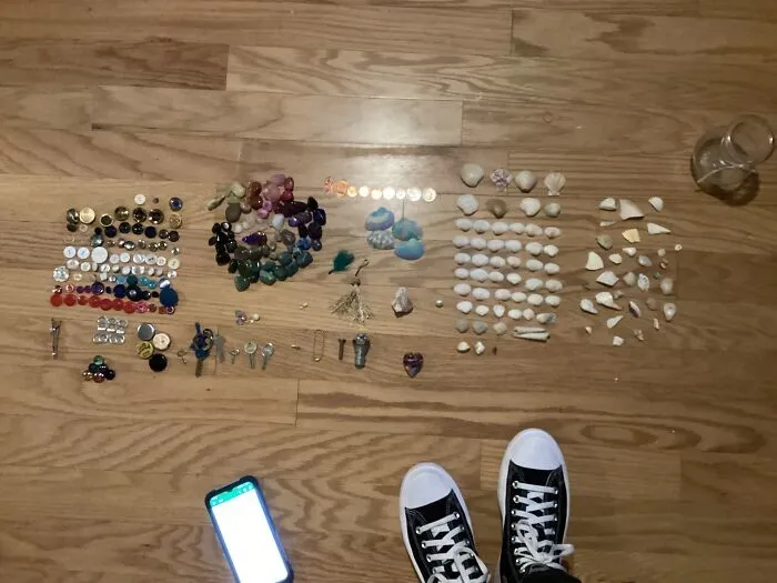 4. «Моя сокровищница. Состоит из найденных камушков, пуговиц, ракушек, монет, ключей и прочей чепухи»