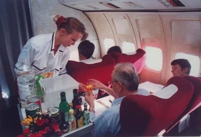 21. Стюардесса, обслуживающая пассажиров на рейсе Трансаэро «Москва-Киев», 1994 год