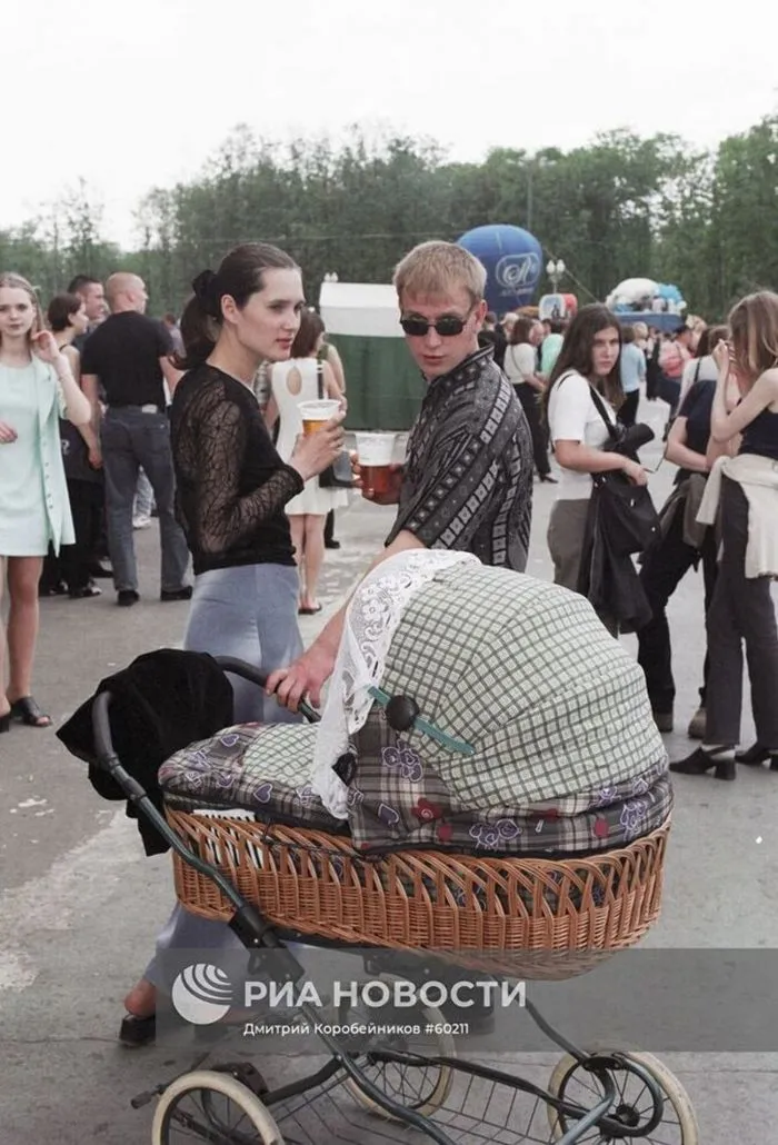 28. Молодая семья в городском парке. Москва, 1999 год.