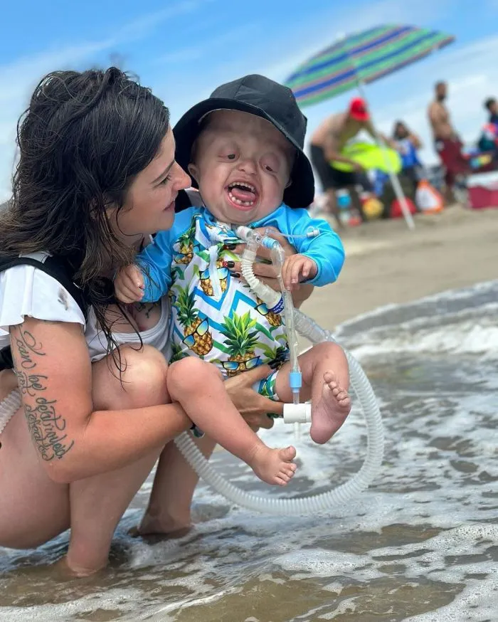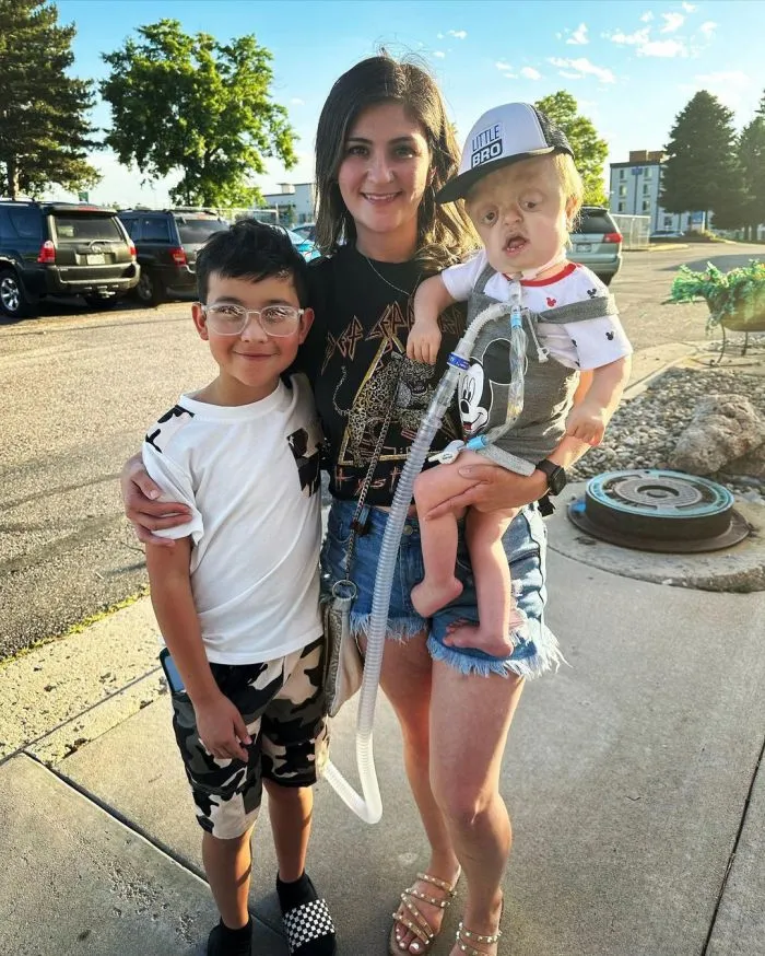Дело в том, что её годовалый кроха особенный. У него синдромом Пфайффера. Это заболевание, при котором поражаются череп, лицо и конечности. Из-за этого у ребёнка огромная голова и выпуклые глаза.