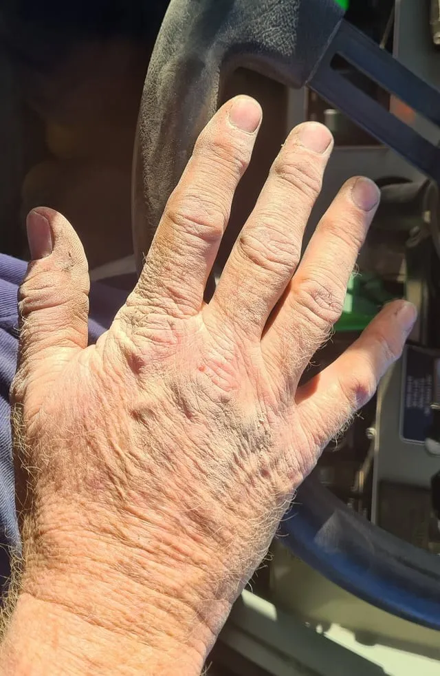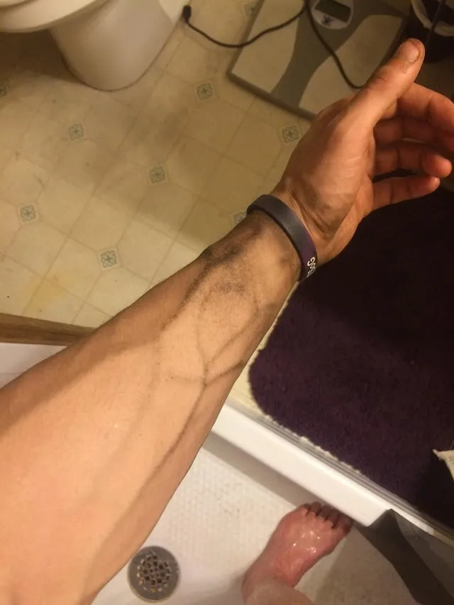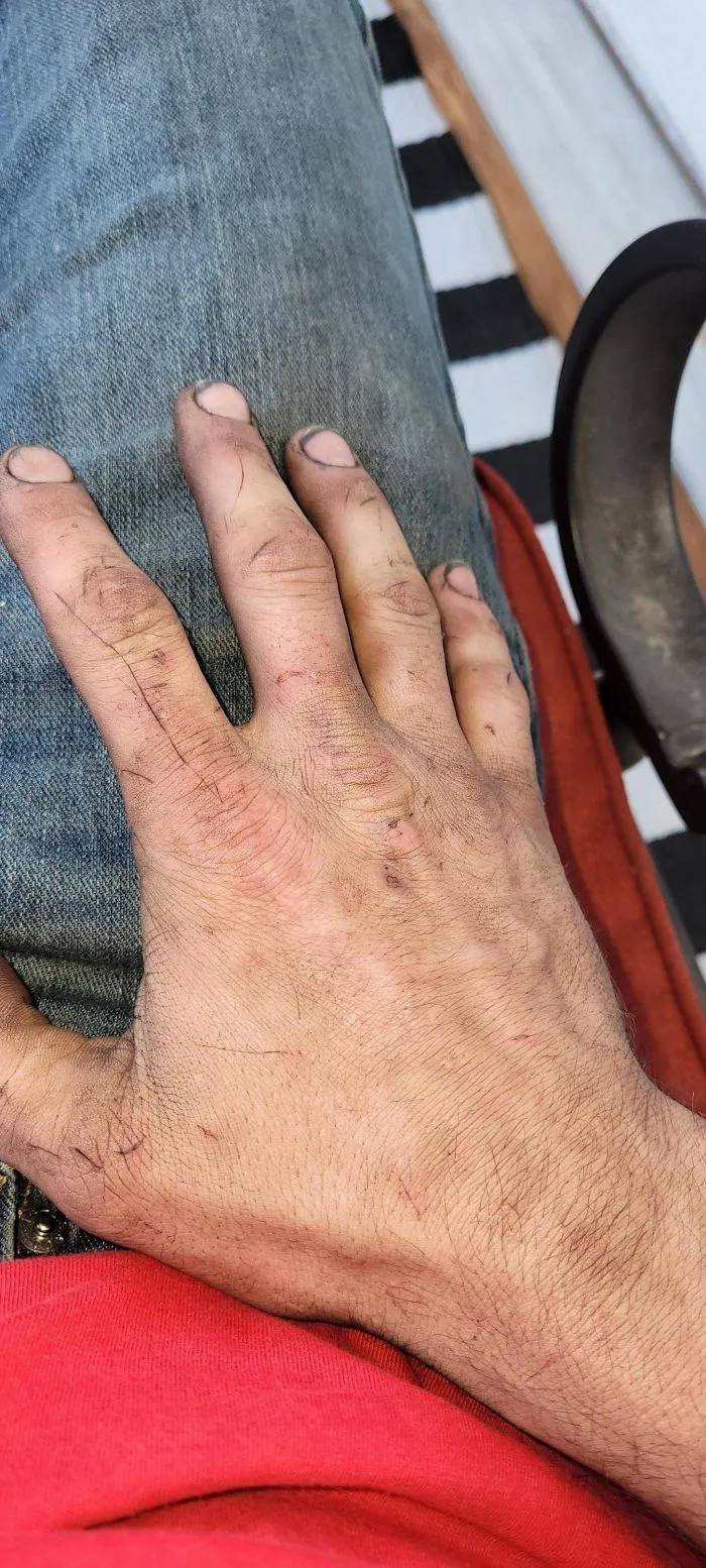 8. "Рука после того, как весь день шлифовала стекловолокно"