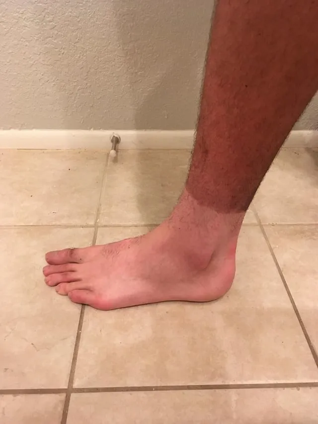 3. "Работаю на съёмочной площадке, так выглядит моя нога после 13-часовой смены. Она реально опухла"