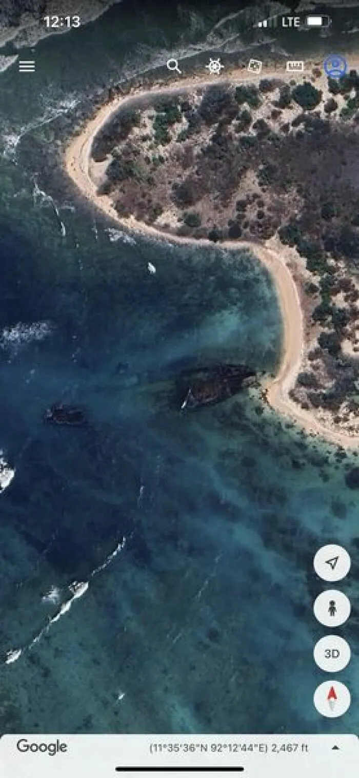 14. Грузовой корабль, потерпевший крушение на острове Северный Сентинел (Индия) в 1981 году. Аборигены (сентинельцы) убивают любого, кто пытается попасть на остров и отвергают попытки контакта