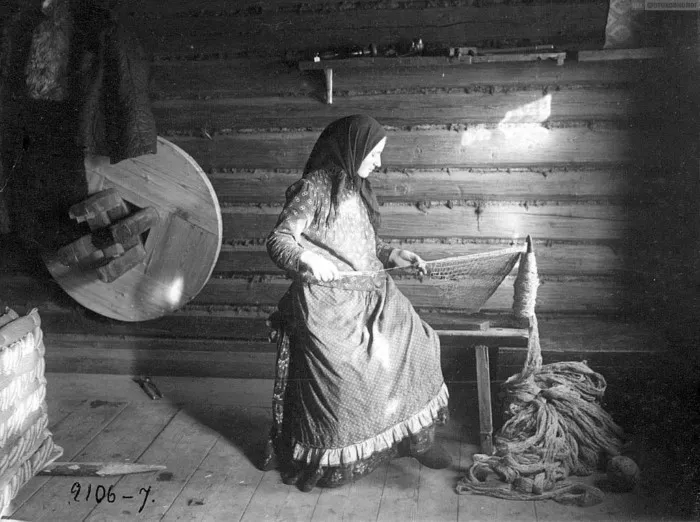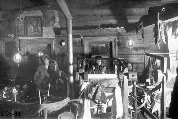 Вязание варежек. Русские. Ивановская обл., Шуйский р-он (Владимирская губ., Шуйский уезд). Начало XX