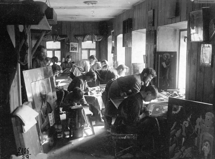 Иконописная мастерская. Вязниковский р-он, пос. Мстера (Владимирская губ.)