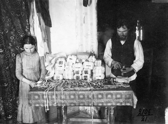 Производство пуговиц. Нашивка пуговиц на картон. Московская обл., Егорьевский р-он (Рязанская губ.)