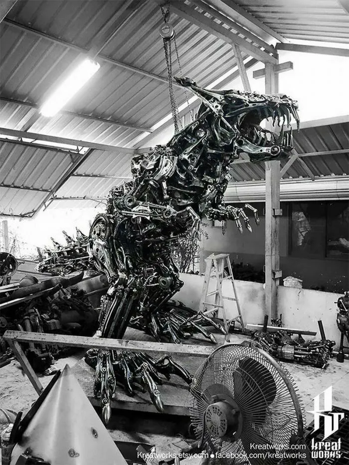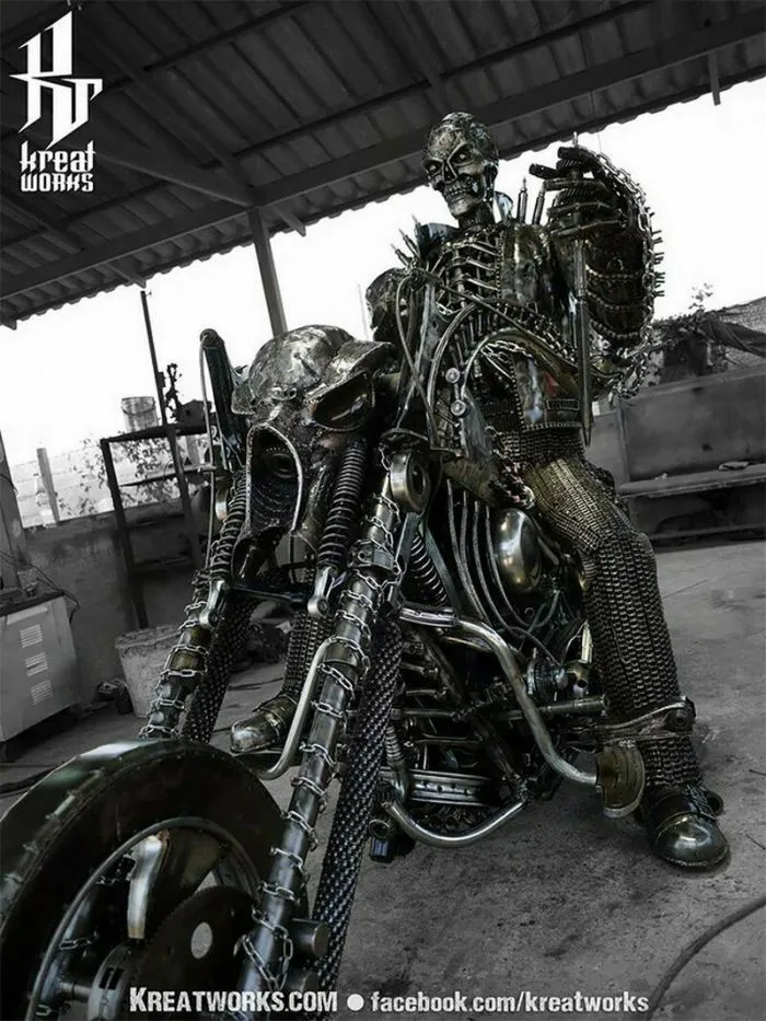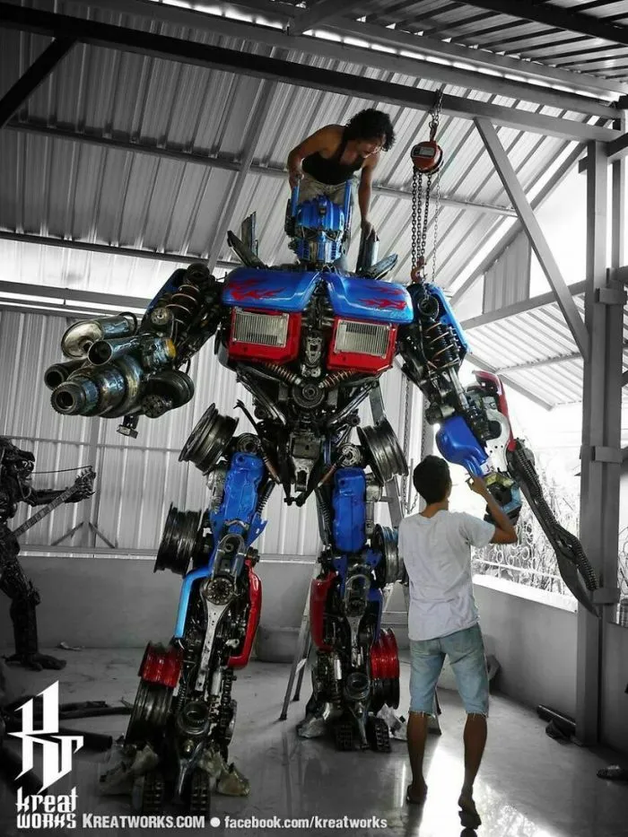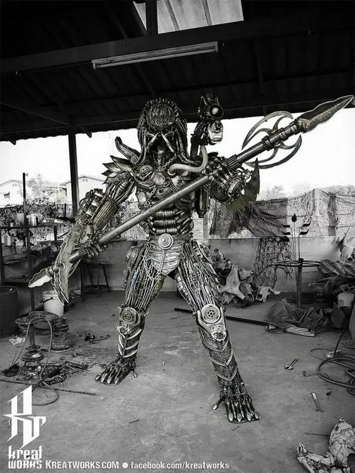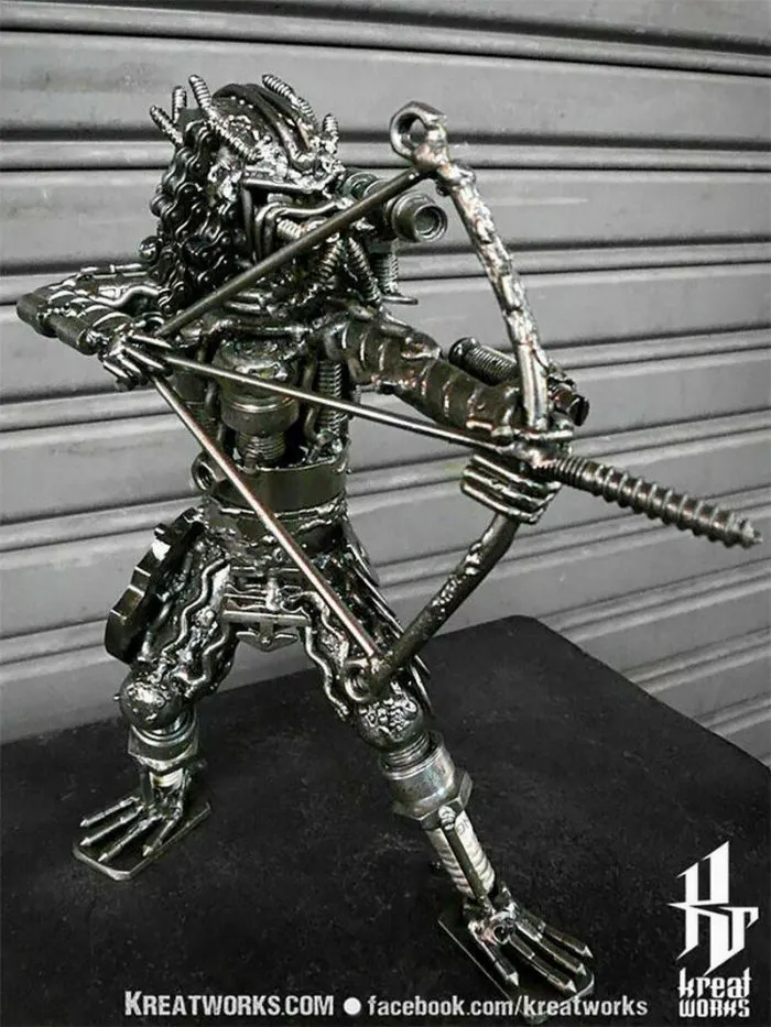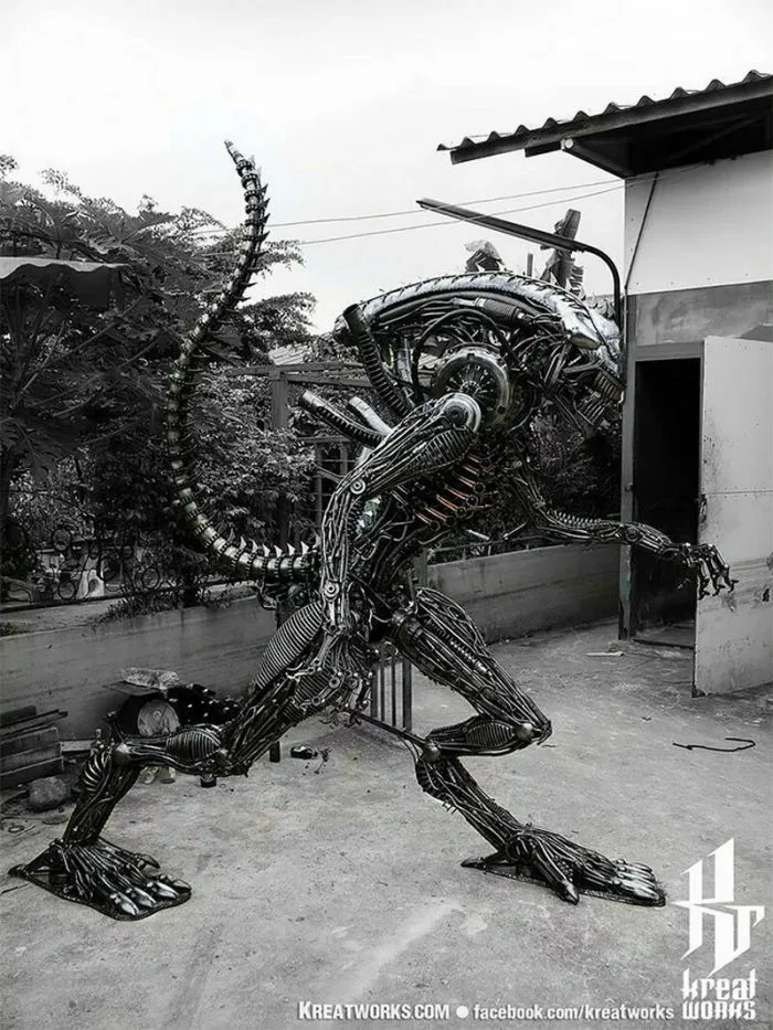 На первый взгляд холодный и жесткий металл никак не вяжется с высоким искусством скульптора. Но мастера из компании Kreatworks смогли доказать, что это не так, и даже старый и бесполезный металлолом может превратиться в шедевр. Тайские мастера работают со старыми деталями от автомобилей, мотоциклов и другой техники, превращая груду мусора в популярных героев. Посмотрите на 12 потрясающих творений этих талантливых скульпторов.