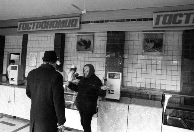 21. Кассир проверяет у покупателя наличие московской прописки при продаже дефицитного товара. Москва, 1990 год