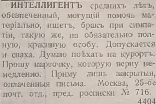 2. Обязательно полную, "Брачная газета", 1915 год