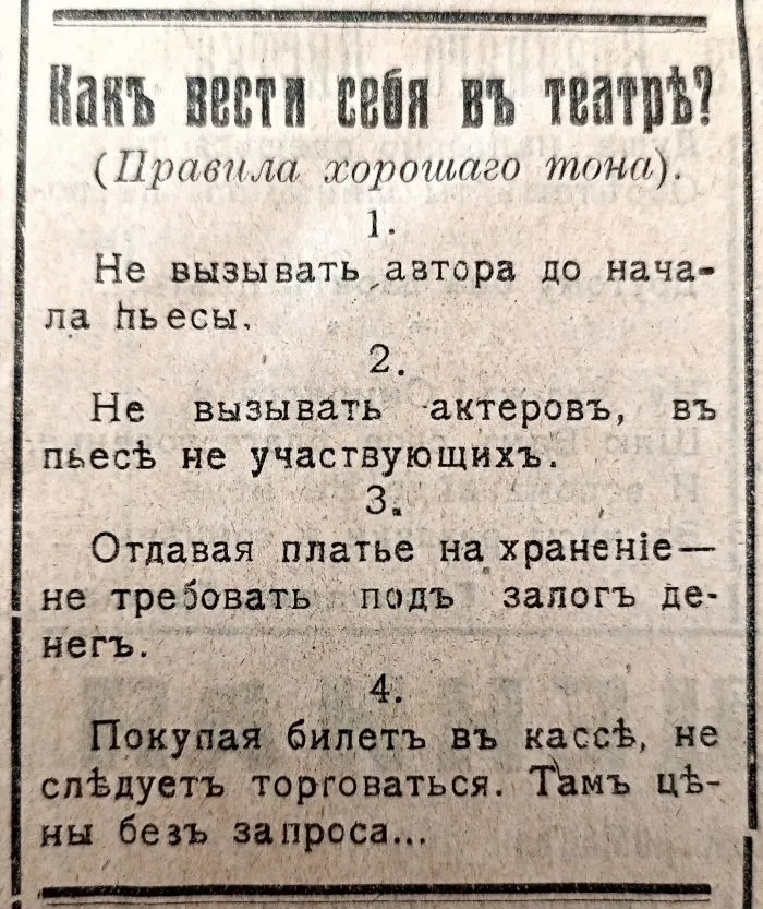 3. Правила поведения в театре от 1910 года