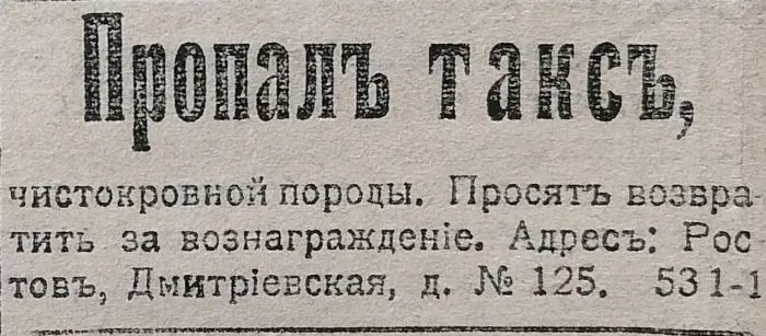 1. Объявление в газете "Тульская молва", 1909 год