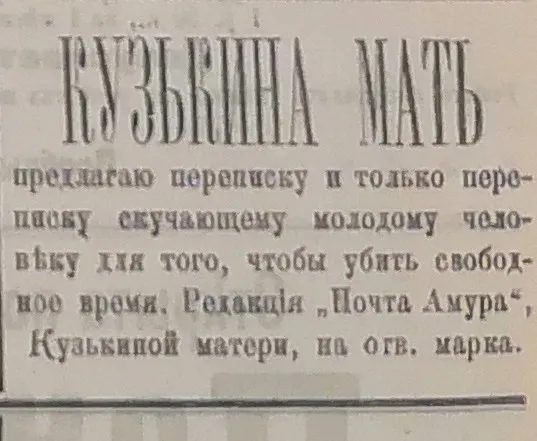 9. Тиндер праотцов, "Почта Амура", 1907 год