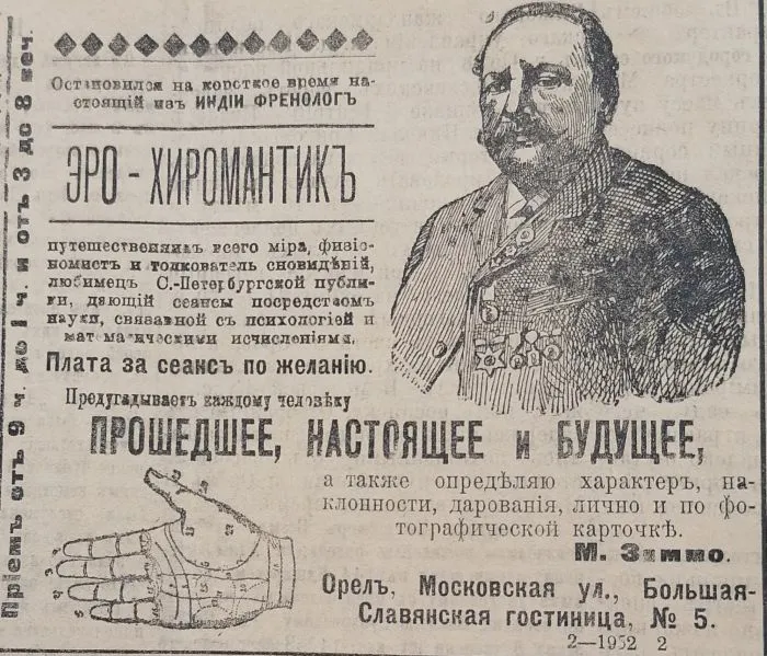 13. Ну почти натальную карту читает, "Орловский вестник", 1908 год