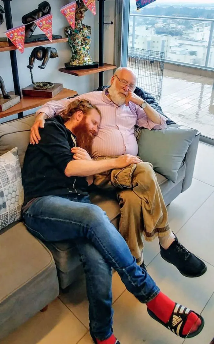 «Приехал домой на праздники. Мы с отцом заснули. Так люблю эту фотографию!»