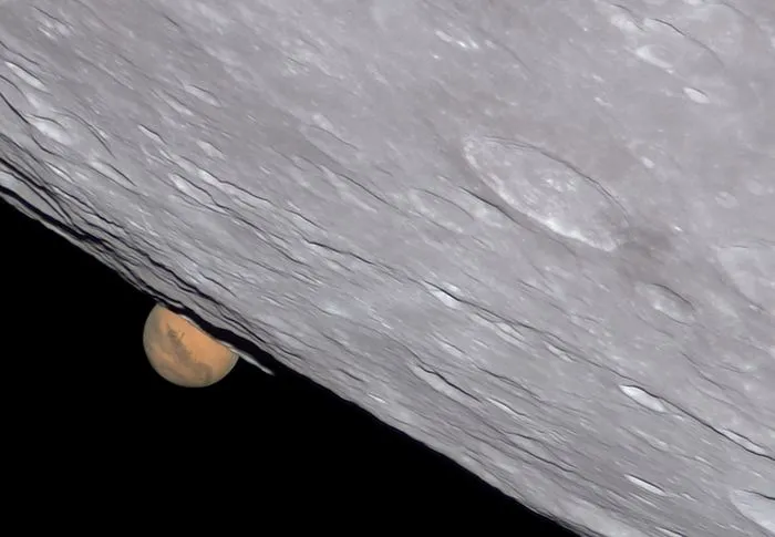 10. Затмение Марса 8 декабря 2022 года. Во время затмения Луна проходит перед планетой Марс. Фотограф - Ethan Chappel
