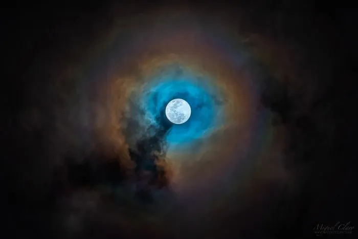 17. Фотография последнего полнолуния 2022 года. Луна окружена "лунной короной". Фотограф - Miguel Claro