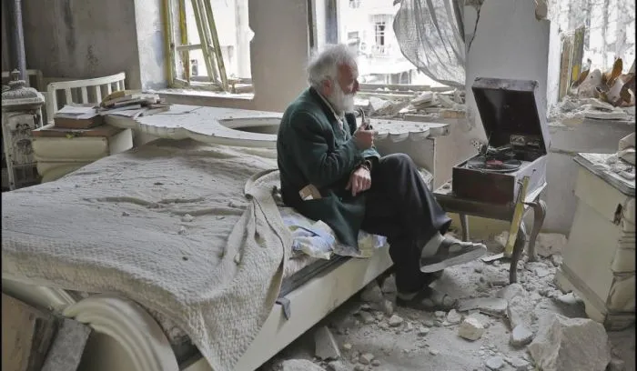 9. Мужчина слушает музыку в своей разрушенной спальне в Алеппо, Сирия. 2017