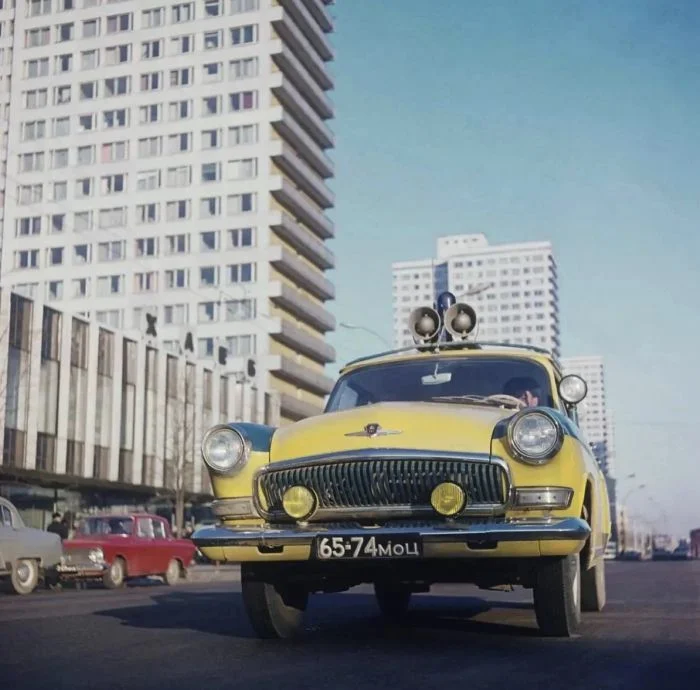 11. Патрульный автомобиль ГАЗ-21 на пр. Калинина, Москва, 1970 год