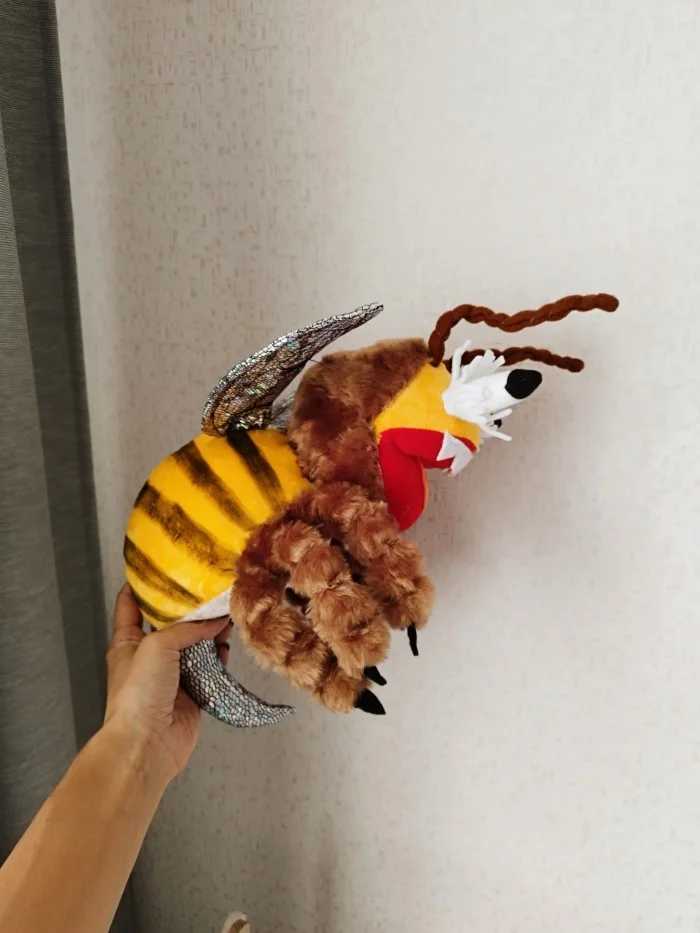 Жало и крылья шила из такого красивого трикотажа, в крылья по краю вставила проволоку чтобы держали форму.