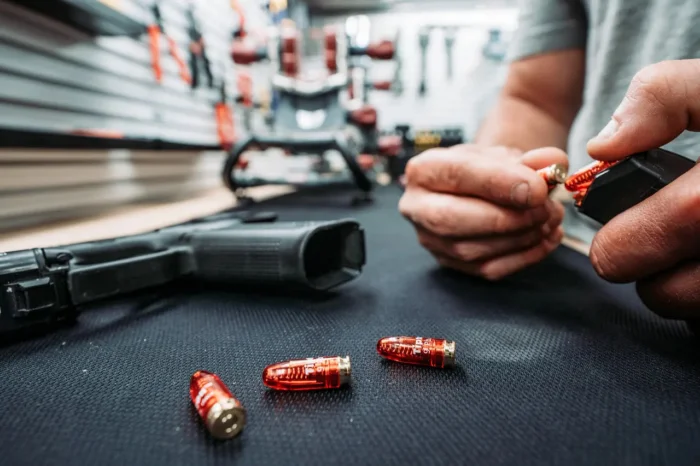 Это специальный фальшпатрон. Смысл работы - тренировка без стрельбы, снятие напряжения с пружины при хранении и сохранение качества бойка.