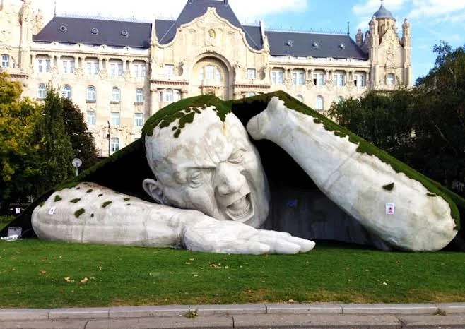 Гигантская скульптура выползает из-под земли, Будапешт, Венгрия