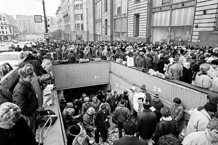 27. Стихийный рынок в Москве, 1992. Лубянка, ( рядом с переходом — магазин "Детский мир")