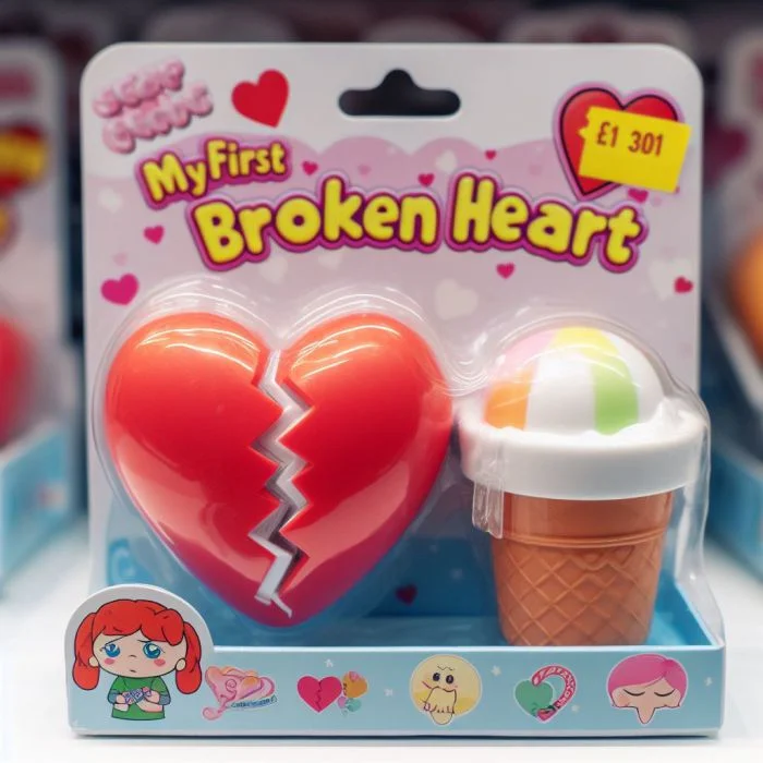 Нейросеть Dalle-3 показала, как выглядели бы игрушки, которые подготовят детей ко взрослой жизни. Первая депрессия, первое пиво, первые счета и первое разбитое сердце. Всё это, думаю, вы уже пережили.