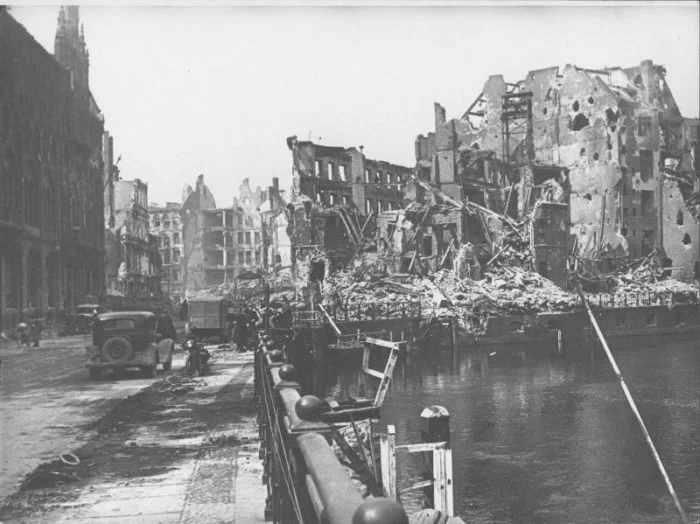 Расчистка улицы у Рейхстага жителями Берлина. Май 1945 г.