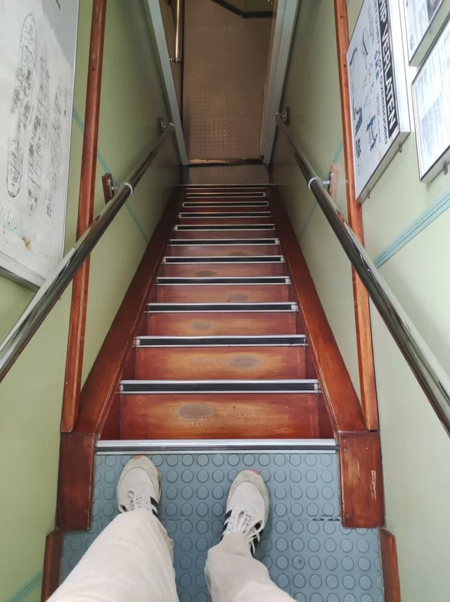 8. Лестница на корабле, благодаря которой видно, что большинство людей спускаются с левой ноги