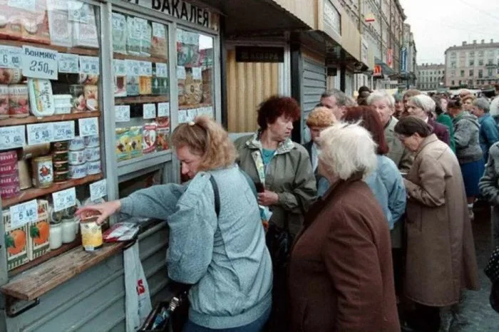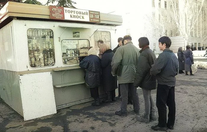 4. Очередь в ларёк возле университета. Мордовия, Саранск, 1995 год.