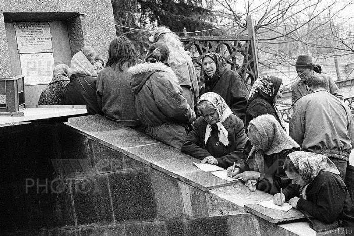 11. Очередь у посольства РФ в Таджикистане, 1996 год.