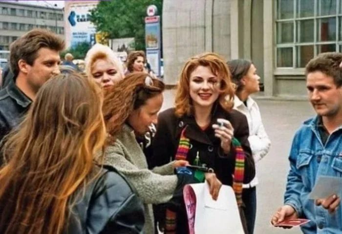 14. Лариса Черникова раздаёт автографы своим поклонникам. Россия, 1990-е годы.