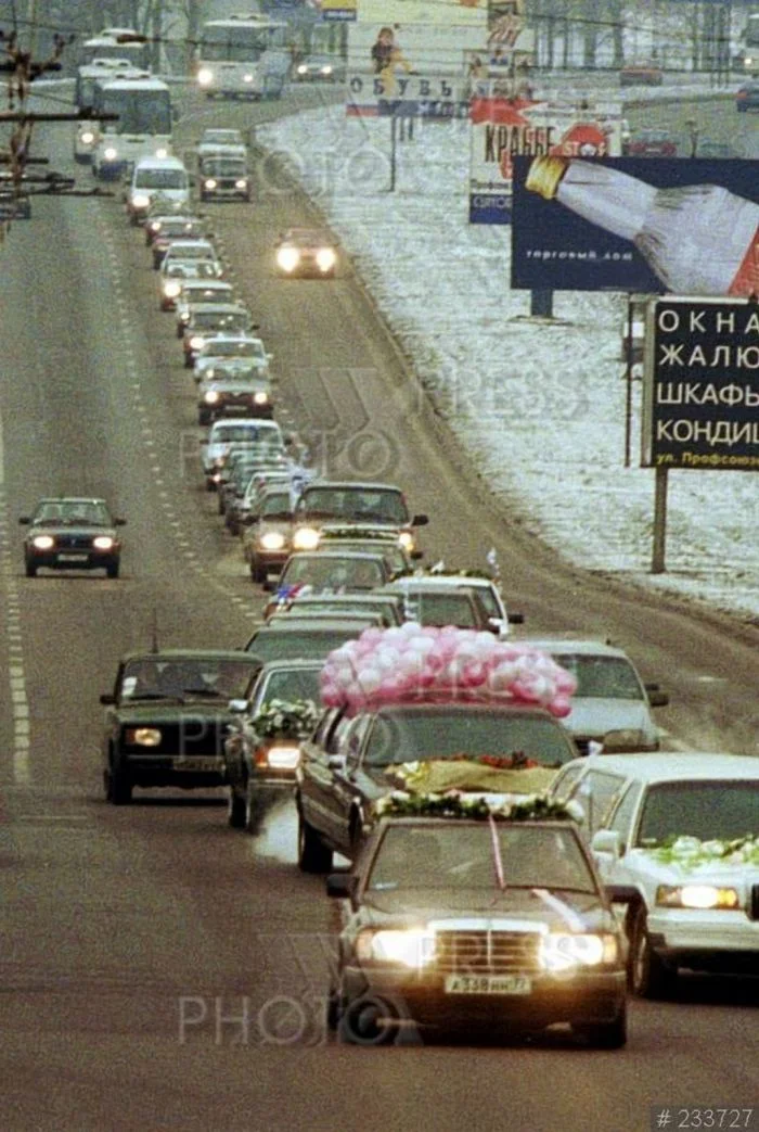 24. 19-летние новобрачные Шишовы пытаются установить рекорд для книги Гиннеса, устроив свадебный кортеж длиной 1024 метра, 1999 год